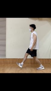 ①~③を、足を交互に変えながら、行うことができれば、バックランジの完成です。